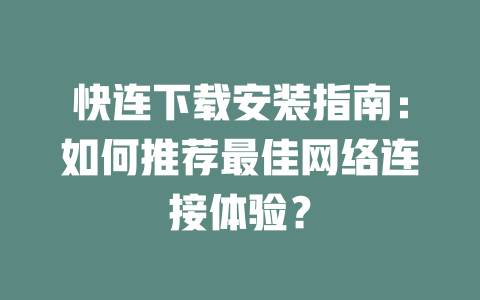 快连VPN下载安装指南+网络加速全面提升技巧